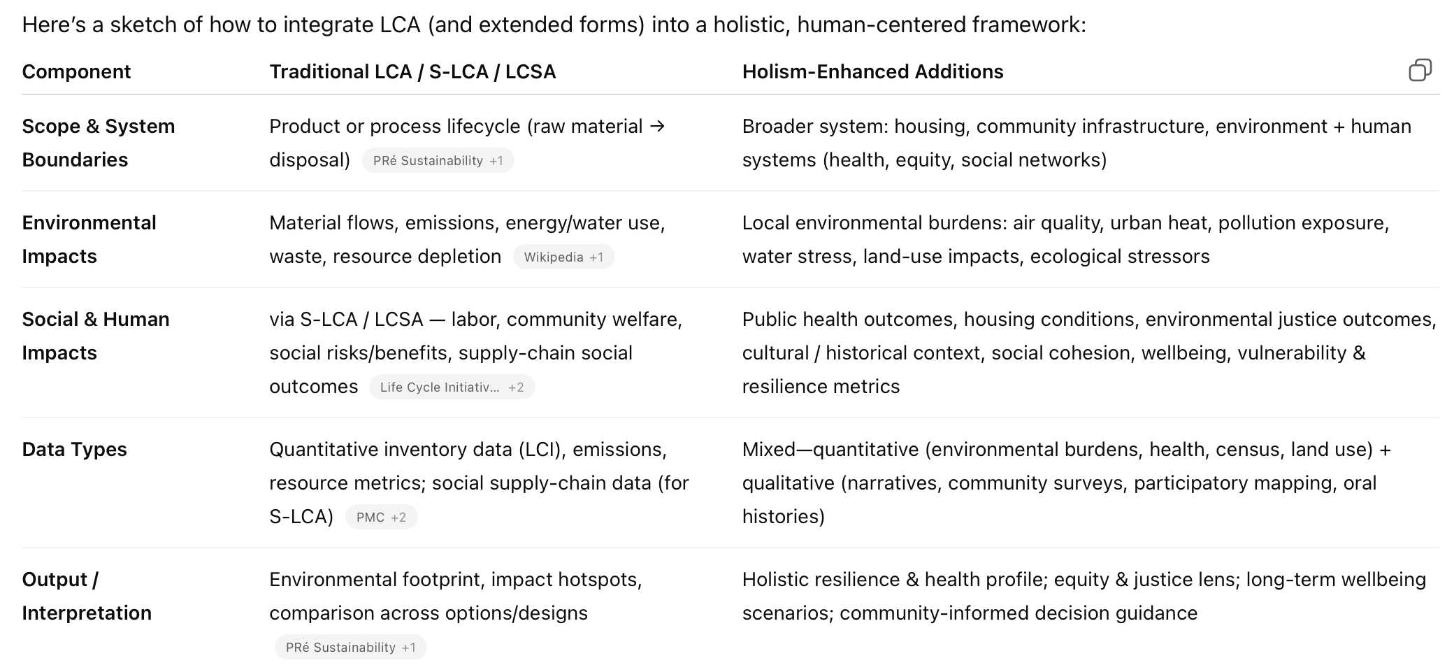 Traditional LCA tools analyze systems and impacts but rarely account for social vulnerability, cultural context, or lived-experience narratives—leaving major dimensions of resilience unmeasured.